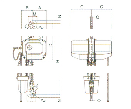 額定載荷 | A | B | C | D | K | L | M | N | O |
