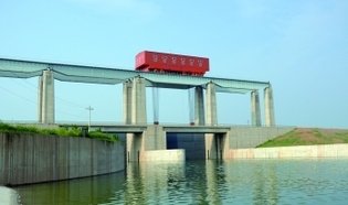 這是一個小型的防洪閘,我們可以看到,電動葫蘆使用群吊的方式控制著閘門的開關,這樣電動葫蘆就起到了節約人力和起重的重要作用。